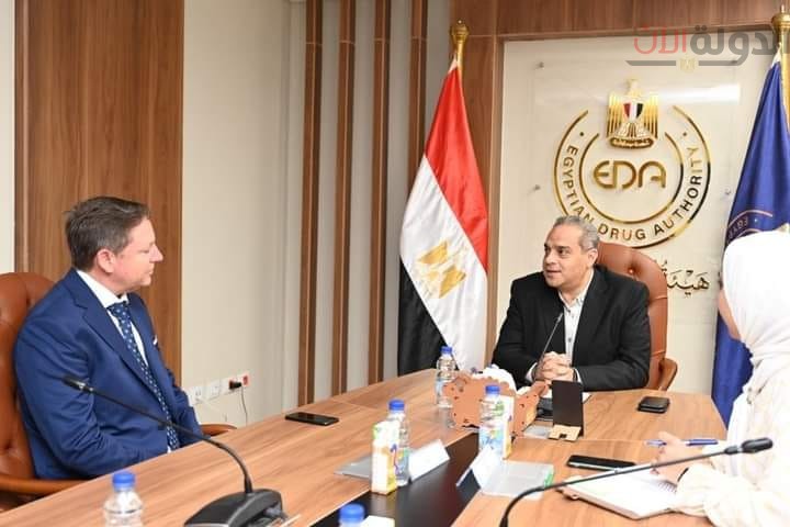 في إطار دعم فخامة السيد الرئيس “عبد الفتاح السيسي” رئيس الجمهورية لملف توطين الصناعات الدوائية في مصر ورؤيه مصر” 20 30″ ، إستقبل السيد الدكتور” تامر عصام” رئيس هيئة الدواء المصرية اليوم الأحد السيد “ديرك أوسنبرج انجلز ” رئيس شركة “فاير كونسيومر” لمنطقة الشرق الأوسط وأفريقيا وتركيا وباكستان ، وذلك بمقر هيئة الدواء المصرية ، لمناقشة سبل التعاون بين الهيئة والشركة في مجال التصنيع الدوائي ومتابعة خطوات توطين مستحضرات باير في مصر ومناقشة آليات جعل مصر مركز تصديرياً للدول الأفريقية والشرق ألاوسط .